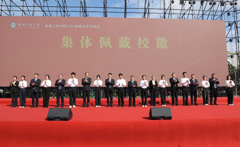 典礼上,校领导为新生代表佩戴校徽。全体新生为自己戴上了这枚象征“徐工院人”身份的徽章,并在电气与控制工程学院浦籍巍同学的带领下共同宣誓,立志传承“格物致知 敬业乐群”的校训精神,刻苦学习,勇于创新,励行奋进。
