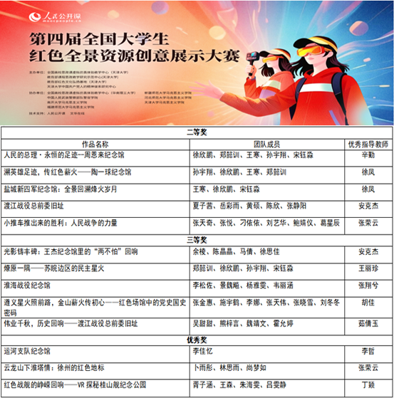 近日,第四届全国大学生红色全景资源创意展示大赛圆满落幕,我校师生荣获二等奖、三等奖及优秀奖13项,我校荣获优秀组织奖。本次大赛,我校在获奖数量、质量与覆盖面上均创参赛以来新高。