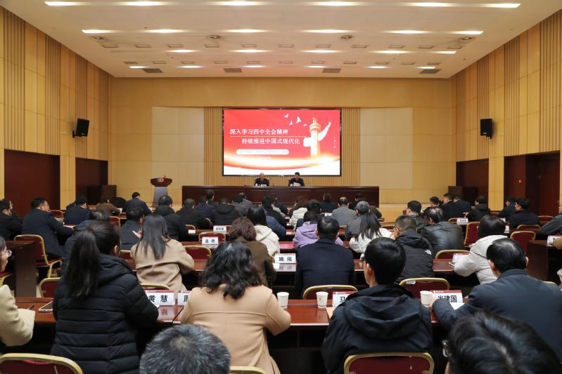 12月9日上午,我校举办学习贯彻党的二十届四中全会精神市委宣讲团报告会暨党委理论学习中心组(扩大)学习会议。市委宣讲团成员、江苏师范大学商学院院长罗栋梁教授作宣讲报告,校党委书记刘洋主持报告会。全体校领导、校党委理论学习中心组成员、全体中层干部、相关学院教师代表和学生代表近200人参加会议。