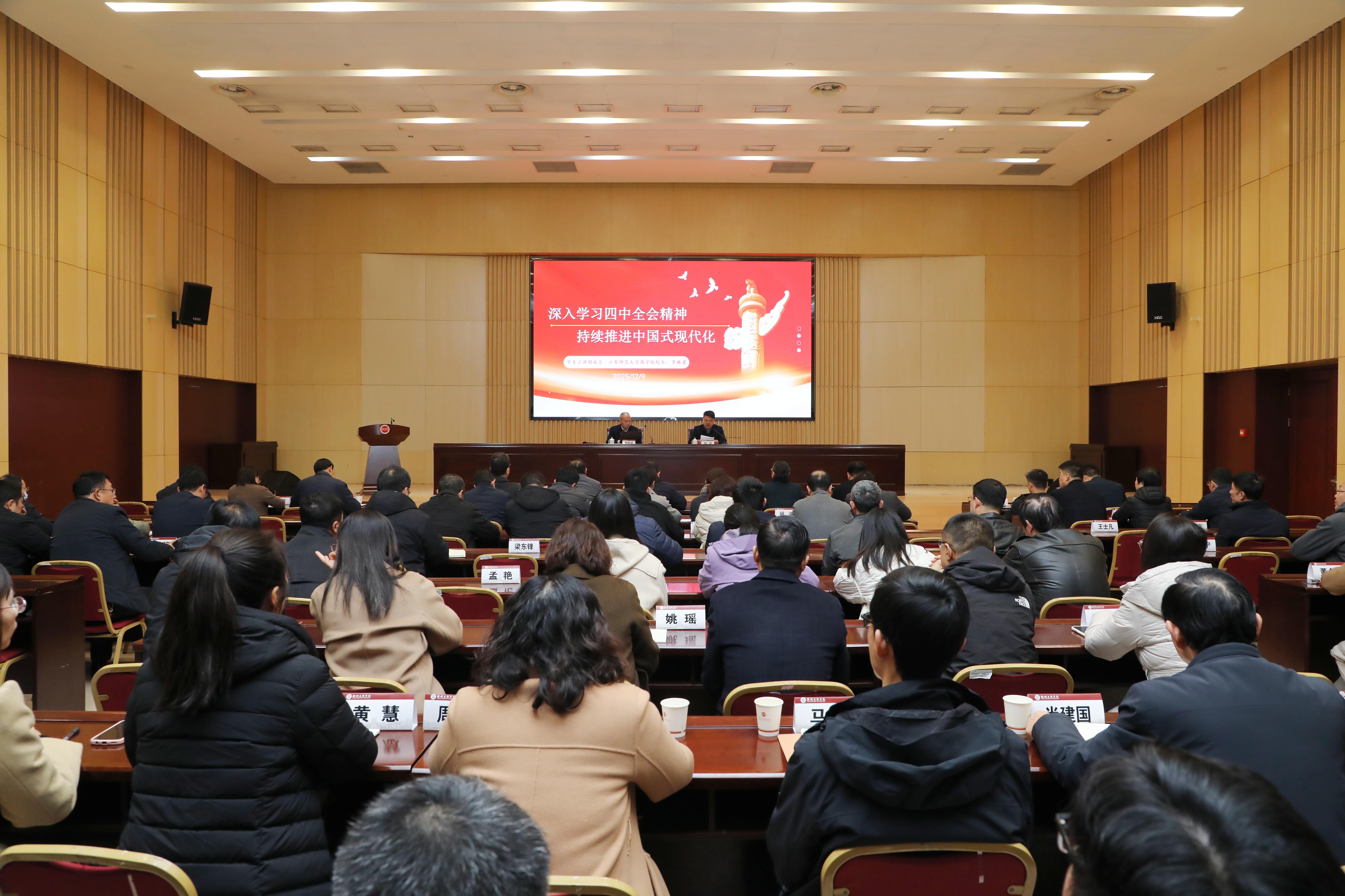 12月9日上午,我校举行学习贯彻党的二十届四中全会精神市委宣讲团报告会暨党委理论学习中心组(扩大)学习会议,邀请市委宣讲团成员作宣讲报告。12月11日,学习贯彻党的二十届四中全会精神联学共讲苏北片区活动在我校举行。团中央、团省委、团市委青年讲师团成员用“青言青语”面向广大青年解读党的二十届四中全会精神。全校各二级党组织通过集中学习、专题研讨等形式深入学习贯彻党的二十届四中全会精神。3月27日,我校召开党的建设和全面从严治党工作领导小组会议,部署启动深入贯彻中央八项规定精神学习教育工作。集中学习阶段,校党委理论学习中心组举行深入贯彻中央八项规定精神学习教育专题读书班,推动学习教育走深走实。