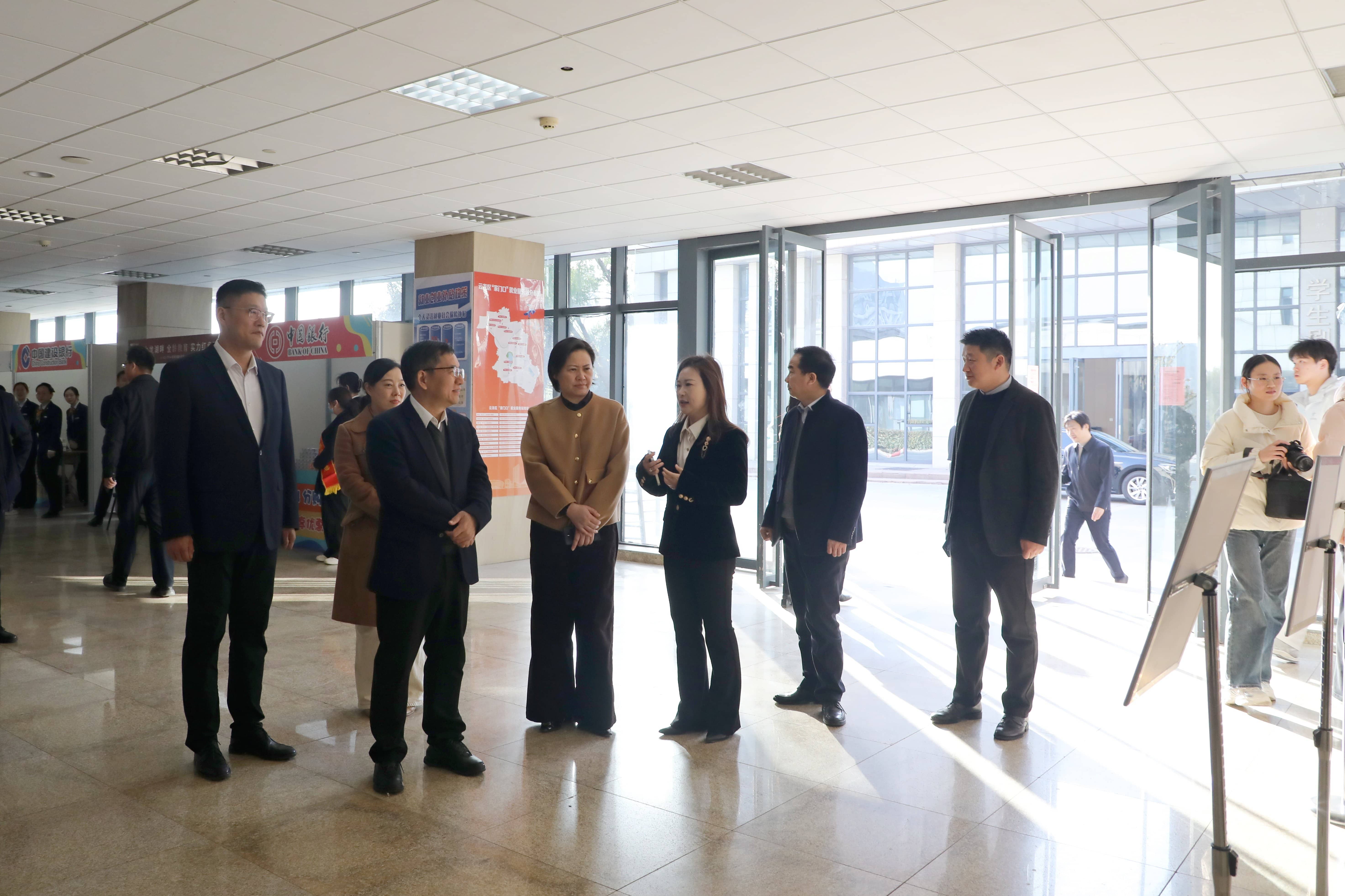 2025年,副省长赵岩来我校调研高等教育工作。市委书记宋乐伟陪同调研。赵岩实地考察了淮海地区非物质文化遗产博物馆、徐州文脉研究中心、工程机械智慧制造创新实训中心、绿色建筑技术服务产业链工程实训中心等,听取了实训中心推进学科发展和产教融合情况汇报。他指出,要持续深化产教融合、校企合作,着眼推动科技创新与产业创新融合发展,促进科研成果更快更好地转化为现实生产力。沈峻峰市长也专程来校调研省市共建我校相关工作。江苏省教育厅和徐州市人民政府签订共建徐州工程学院协议。