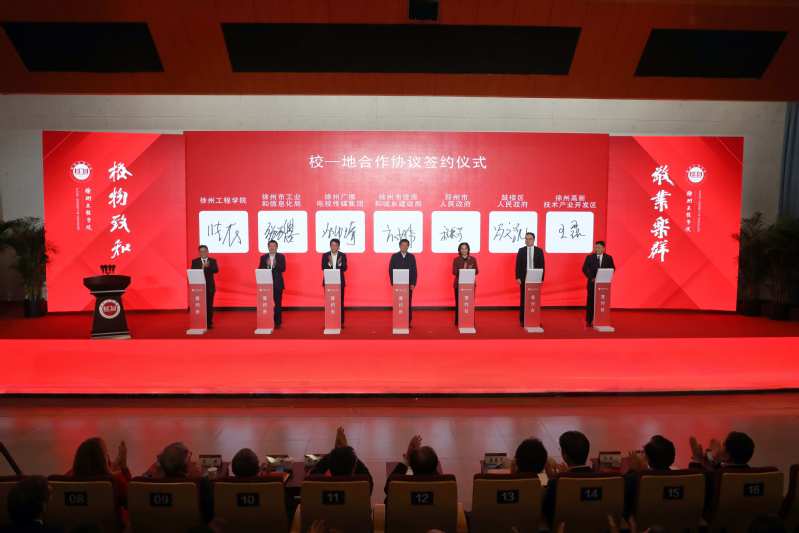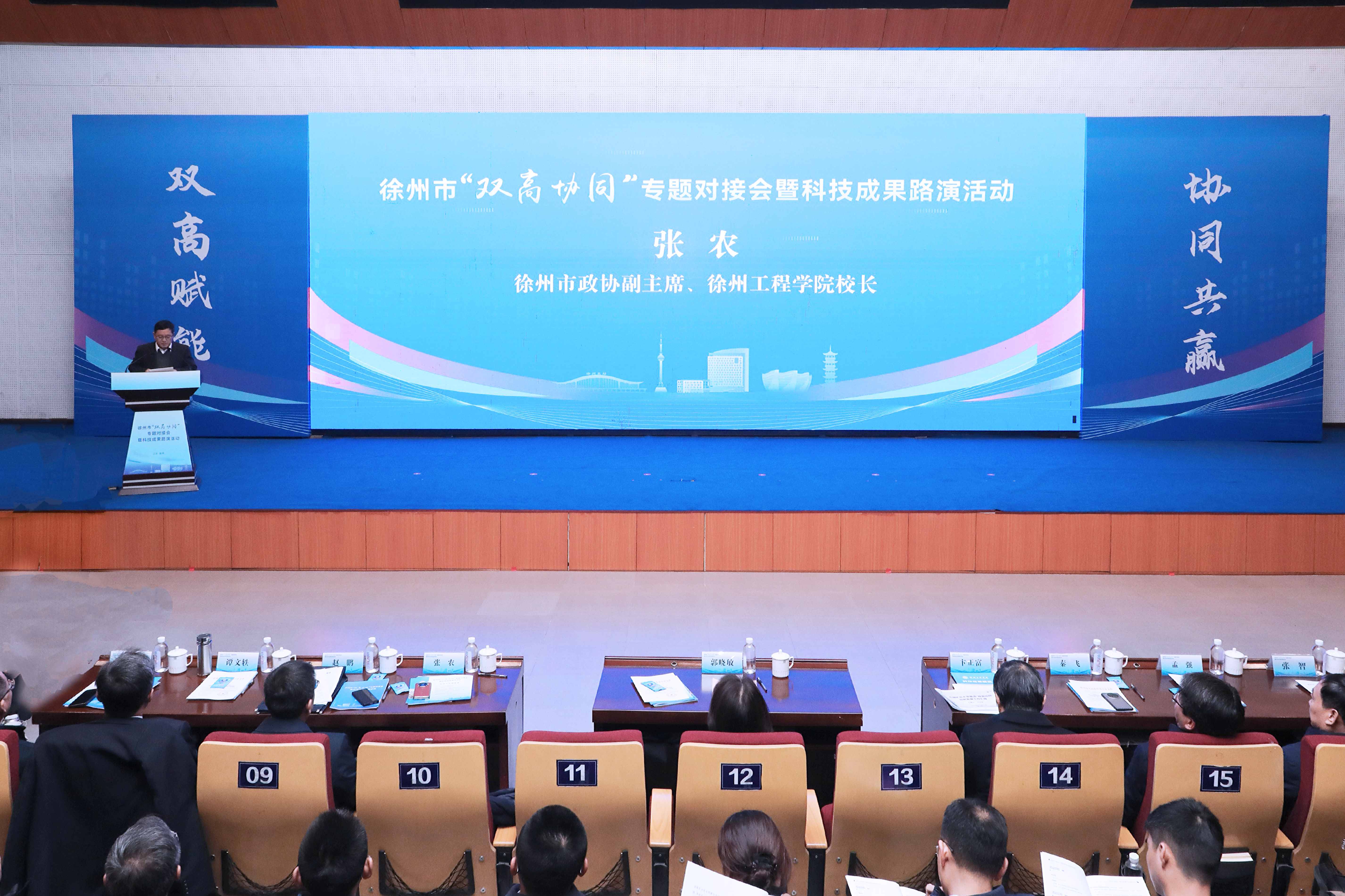 与徐州高新区结对入选江苏省“双高协同”试点单位。12月12日,徐州市“双高协同”专题对接会暨科技成果路演活动在我校举行,会议发布了《徐州市关于推进高新区和高等院校协同创新发展三年行动计划》,举行了9项代表性合作项目签约仪式。11月12日,我校和徐州市工信局联合举行的“百才兴企科创强链”高层次人才赋能产业计划启动仪式在中心校区举行,我校选派23名博士教师脱产深入企业,协调推动产业研发和服务。2025年,学校还与丰县人民政府等地方政府,与展视网(北京)科技有限公司等企业,分别签署了战略合作协议,谱写校地、校企协同发展新篇章。