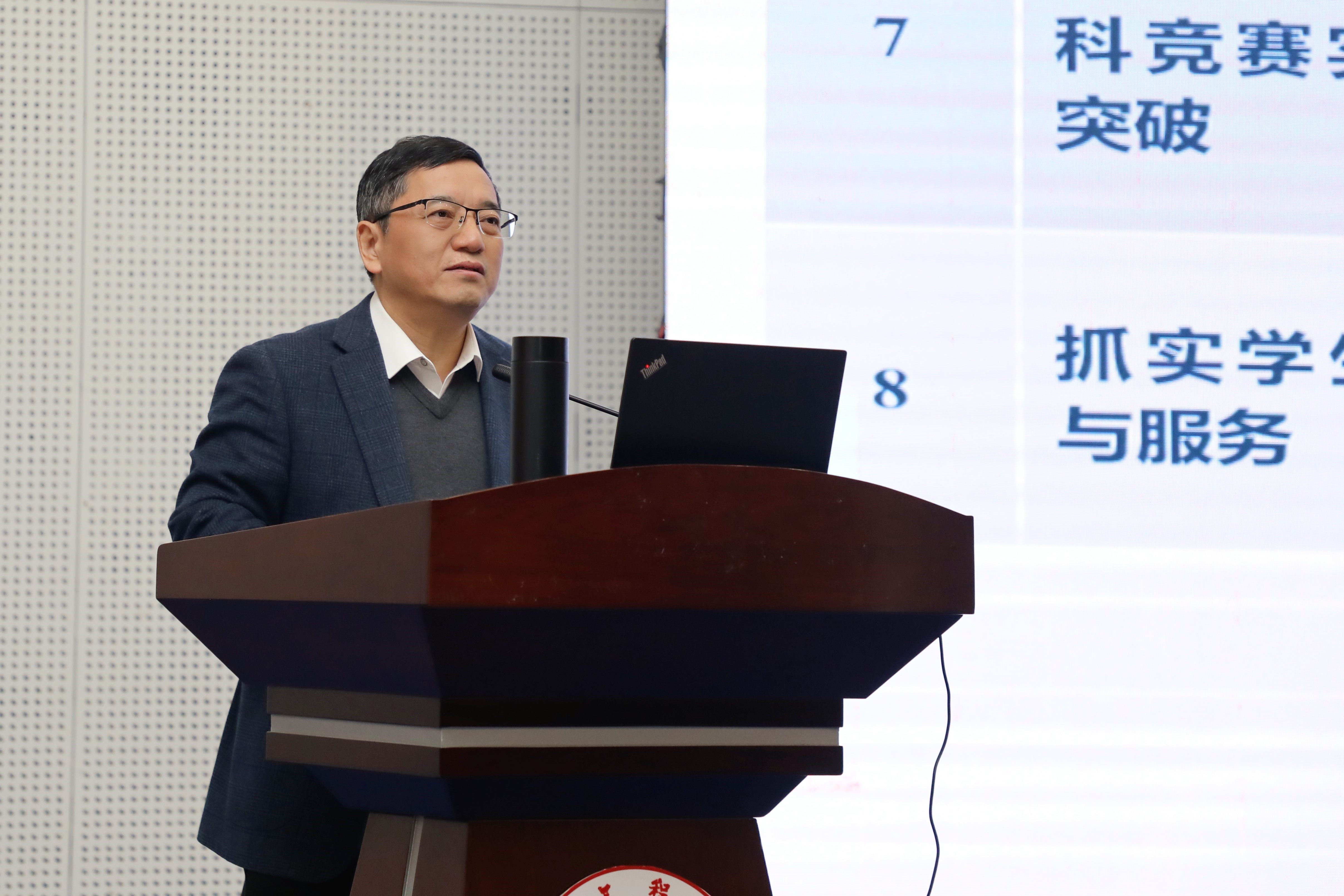 张农作题为《笃行实干开新局 聚势赋能提质效——为“十五五”学校事业高质量发展强根筑基》的报告,全面回顾了2025年工作成绩,从政策要求、内涵建设、校地融合、改革创新四个方面,研判发展新形势新要求,并对2026年工作进行了部署。2026年,学校将聚焦“规范、发展、拓新”发展主题,坚持“务实、做实、实做”工作基调,聚力整体工作协同推进、重点工作攻坚突破,持续推进“两个创建”,全面深化“省市共建”,抓实本科教育教学,加快实验室升级改造,构建学位点与研培新格局,强化有组织科研攻关,拓展国际交流合作,巩固支撑保障基础,重点做好“十五五”规划及各专项规划,继续大力推进师资队伍建设,持续深化规范运行与效能提升,加大拓新拓展工作力度等各项工作,确保“十五五”发展首年各项任务圆满完成,推动学校事业发展再上新台阶。
