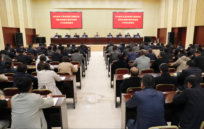 4月10日下午,中共徐州工程学院第三届委员会对机关党委开展专项巡察工作动员部署会在中心校区行政楼报告厅召开。校党委书记、巡察工作领导小组组长陈奎庆作动员讲话。全体在徐校领导、党委常委、巡察工作领导小组成员、全体中层干部、专项巡察组成员、巡察办工作人员参加会议。校党委副书记、巡察工作领导小组副组长刘洋主持会议。校纪委书记、巡察工作领导小组副组长王宏萍宣布授权任职和任务分工。