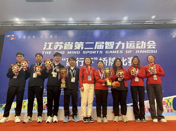 由江苏省体育局主办的江苏省第二届智力运动会于近日在镇江市拉开帷幕,我校运动队代表徐州市参加桥牌项目比赛。在16日结束的桥牌比赛中获得青年组男子团体赛冠军、女子团体赛亚军、男子双人赛亚军和季军、女子双人赛季军,张楠老师获得成年组女子团体赛第四名和女子双人赛季军的优异成绩。