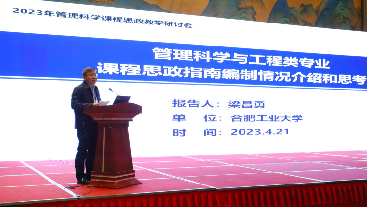 主旨报告阶段,黄海军教授、上海数据交易所研究院院长黄丽华教授、东北财经大学学术委员会主任唐加福教授、合肥工业大学梁昌勇教授分别作题为《<生产与运作管理>课程思政的实践》《<管理信息系统>课程思政建设的逻辑设计》《大数据+管理科学专业人才培养的实践与思考》《专业课程思政指南编制工作情况介绍与思考》的大会报告。