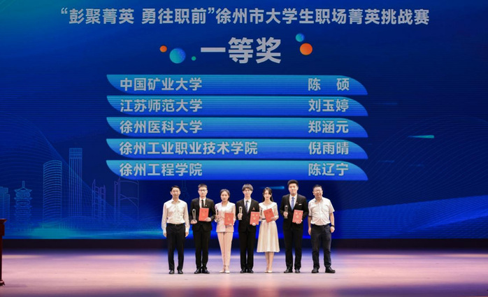 近日,由共青团徐州市委员会、徐州市教育局、徐州市人力资源和社会保障局、徐州市文化广电和旅游局、徐州报业传媒集团、徐州市学生联合会主办的“彭聚菁英 勇往职前”徐州市大学生职场菁英挑战赛落下帷幕,我校取得优异成绩,材料与化工学院陈辽宁荣获一等奖,商学院章海茹、数学与统计学院王菲菲、人文学院曹予渊荣获三等奖,学校获优秀组织奖,充分展现了青年学子良好的就业能力、综合素质和精神风貌。