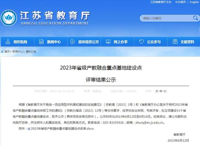 近日,经江苏省教育厅公示,我校申报的“绿色食品先进制造产教融合重点基地”获批为省级产教融合重点基地建设点。这是我校继2022年 “工程机械智能制造产业学院”获批为省级重点产业学院建设点后,在产教融合方面取得的新突破。